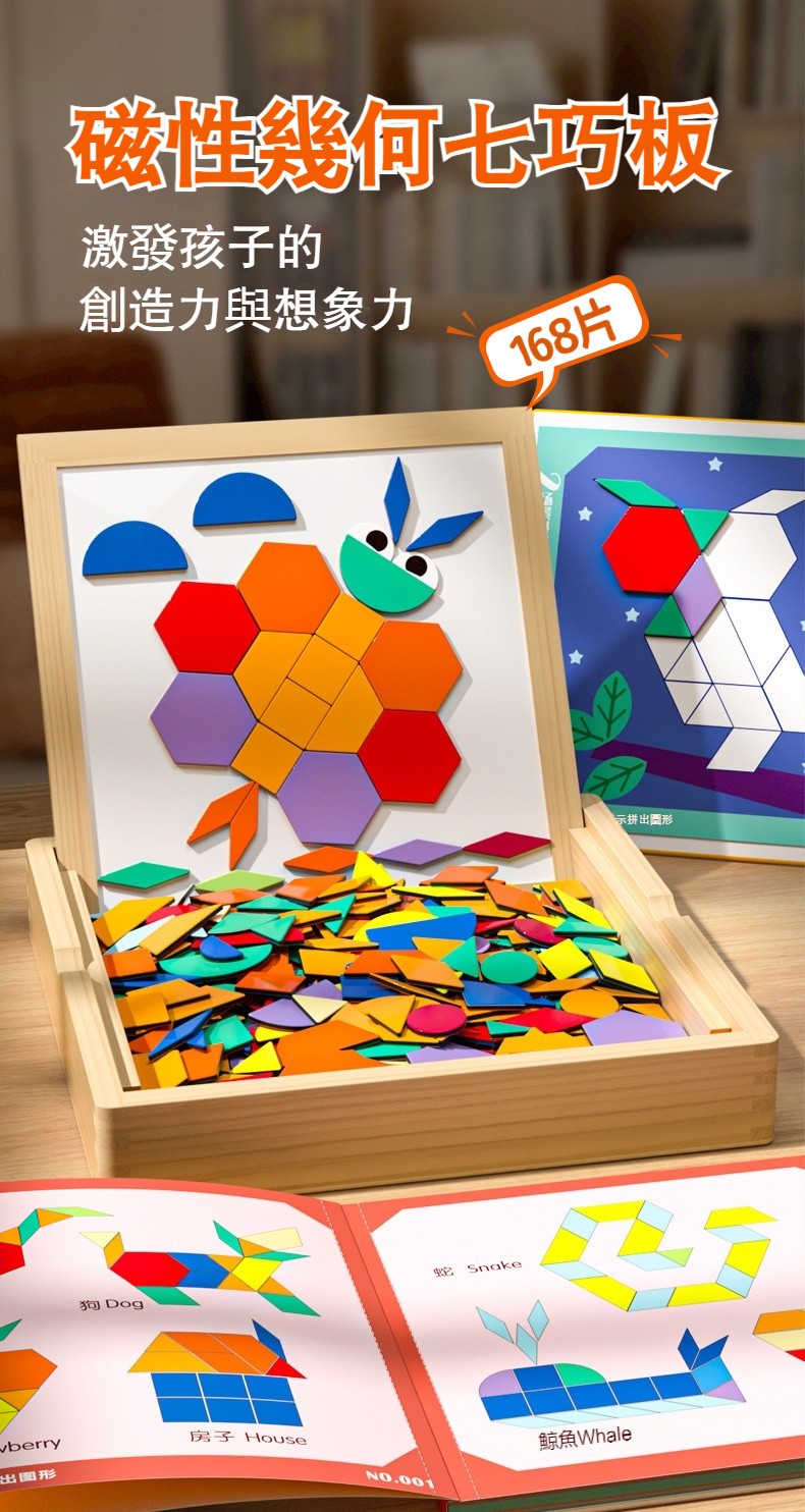 【兒童百變磁性拼圖七巧板】手眼協調✅創造力與想象力✅益智早教✅顏色認知✅形狀認知✅