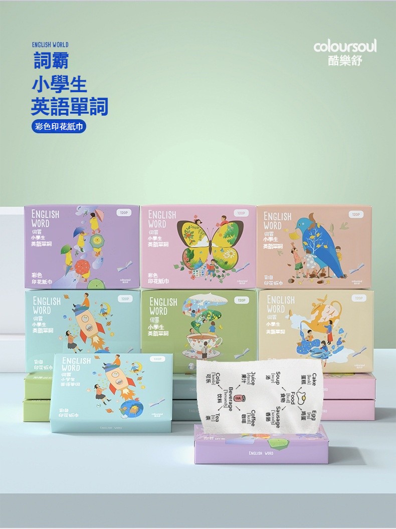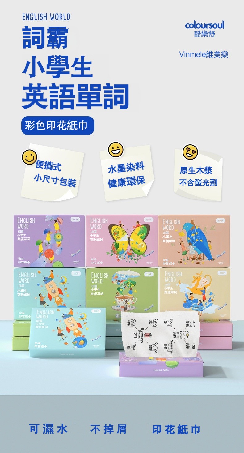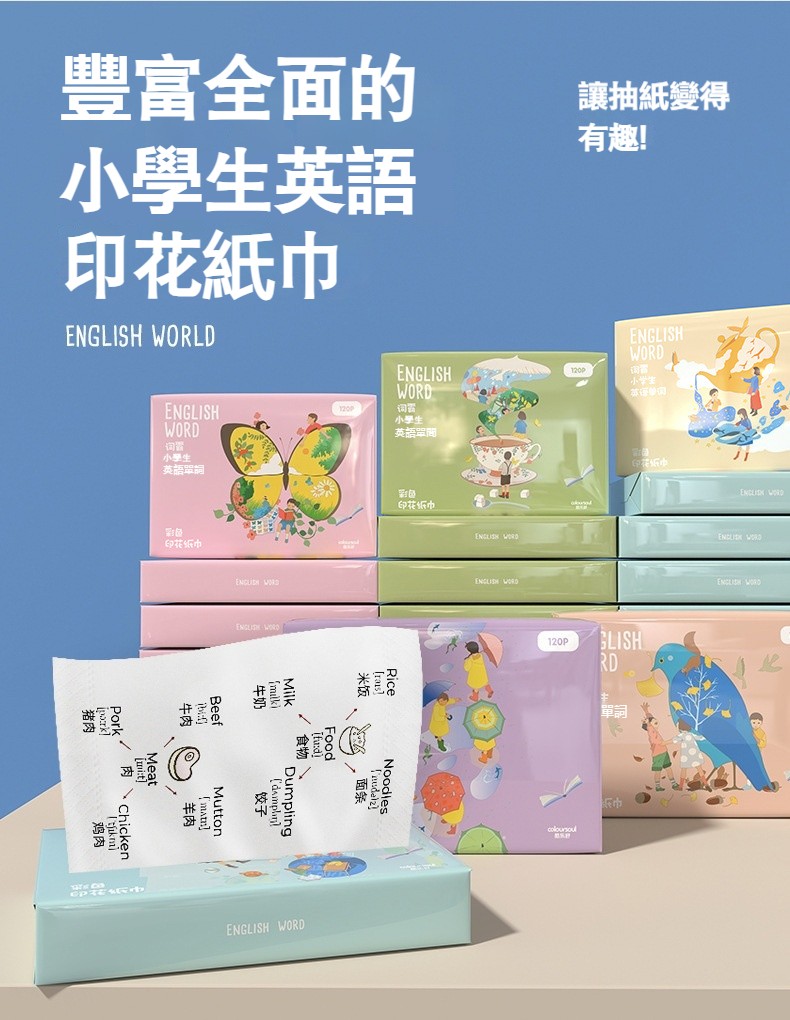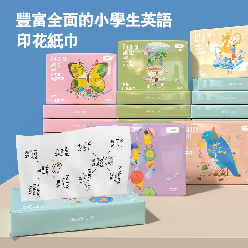 【英語單詞印花便攜式抽紙】不含熒光劑✅天然水墨染料✅乾濕兩用✅四層加厚✅快樂學習✅