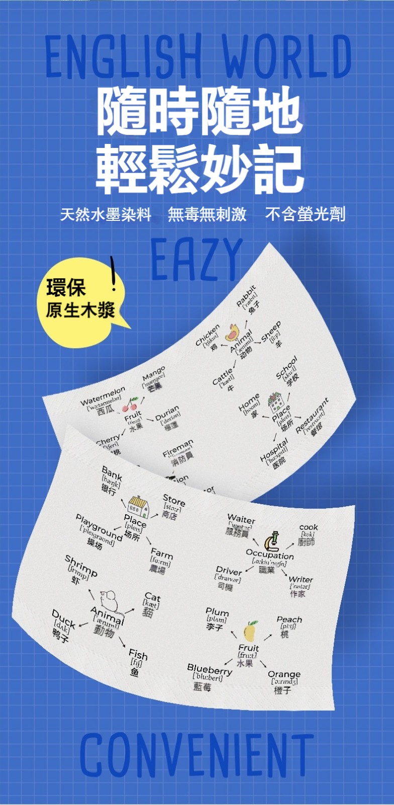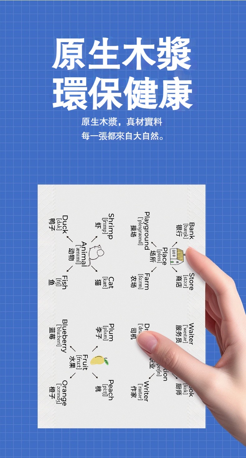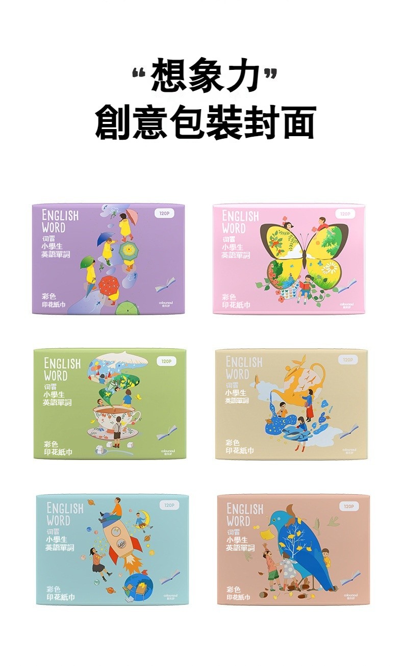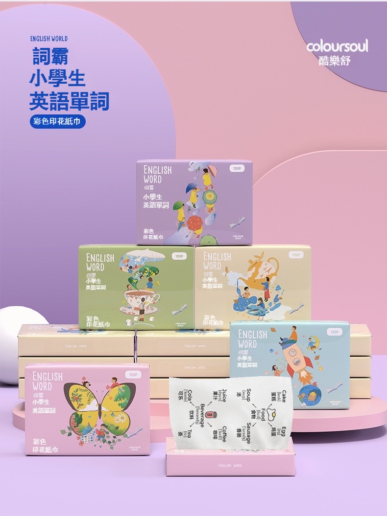 【英語單詞印花便攜式抽紙】不含熒光劑✅天然水墨染料✅乾濕兩用✅四層加厚✅快樂學習✅