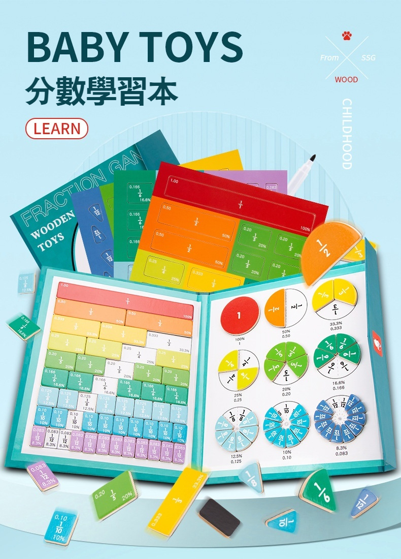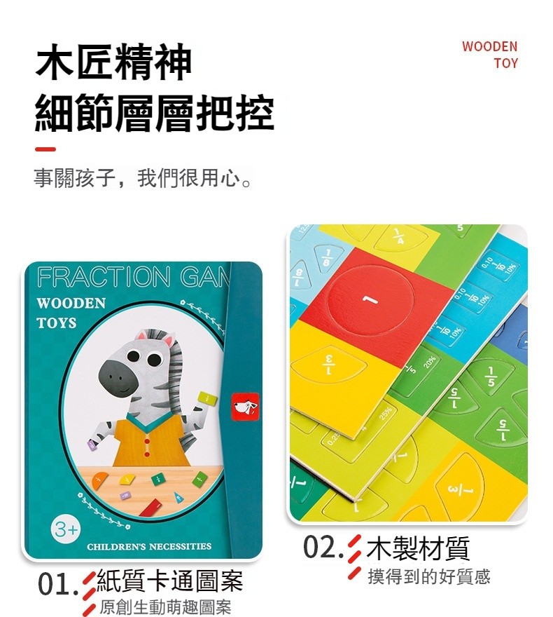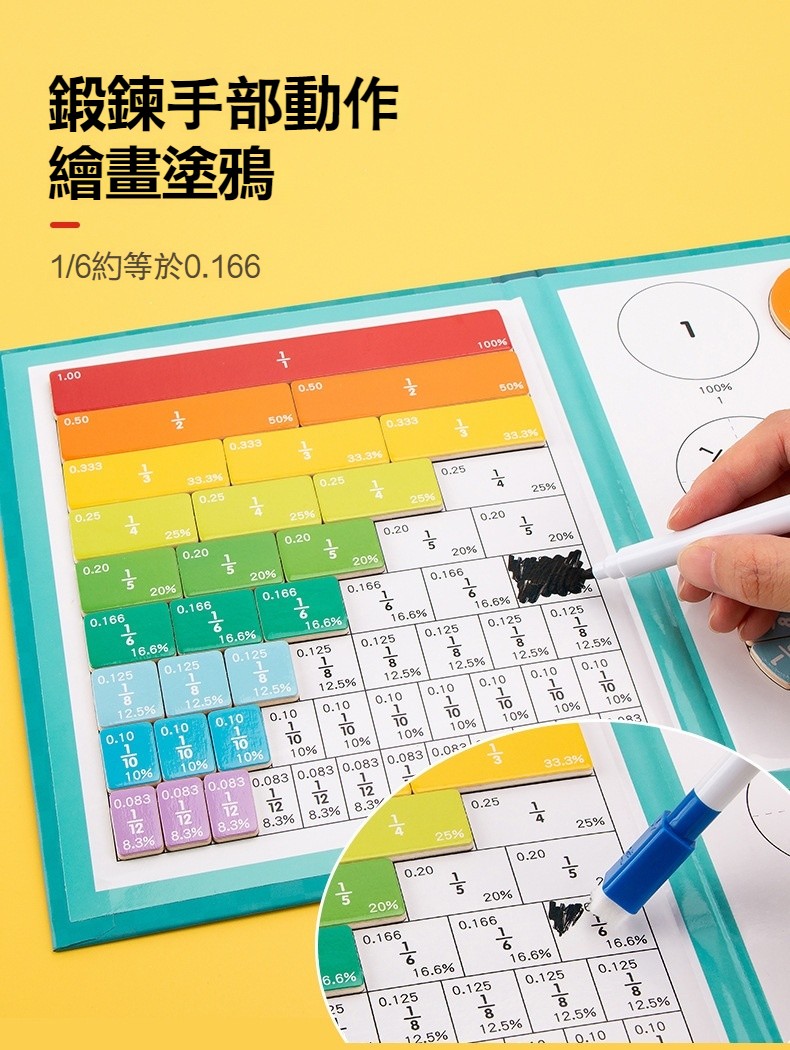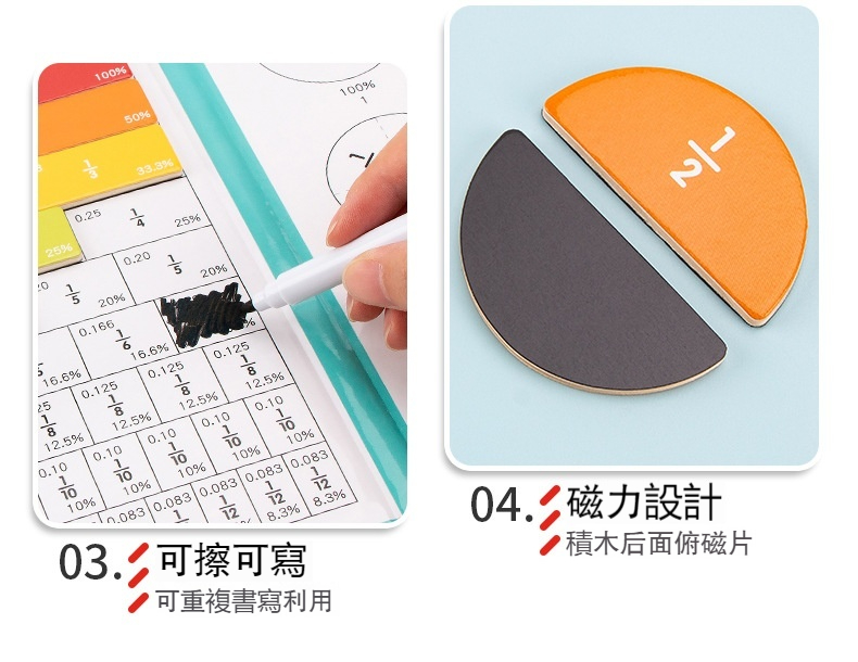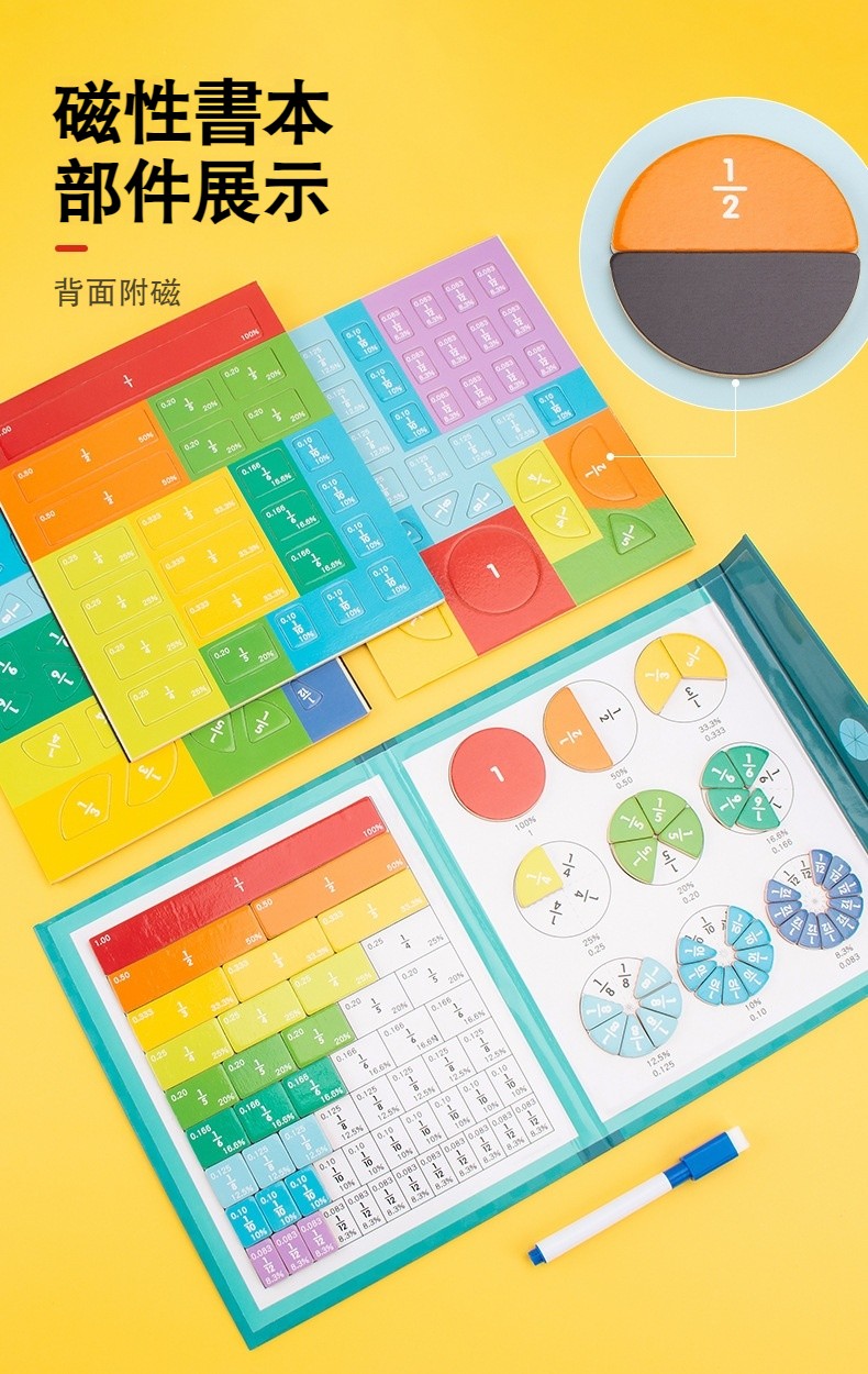 【木製磁性學習拼圖教具】分數概念遊戲✅鍛煉手部動作✅識圖辨義✅收納便攜✅可擦可寫✅